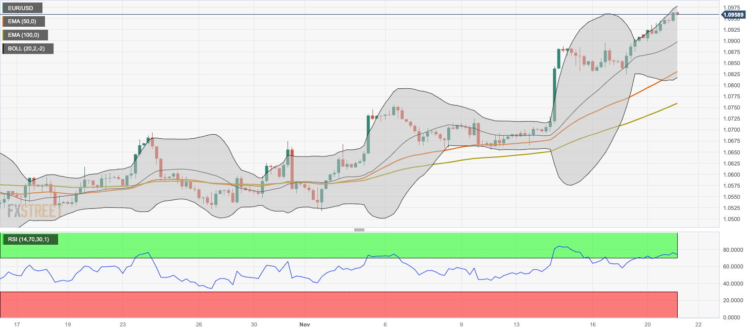 [ad_1] Share: EUR/USD extends its upside above 1.0950, up 0.18% on the day. The pair holds above the 50- and 100-hour EMA with the overbought RSI condition. The first upside barrier is seen at 1.0978; the 1.0895–1.0900 zone acts as an initial support level for the pair. The EUR/USD pair trades in positive