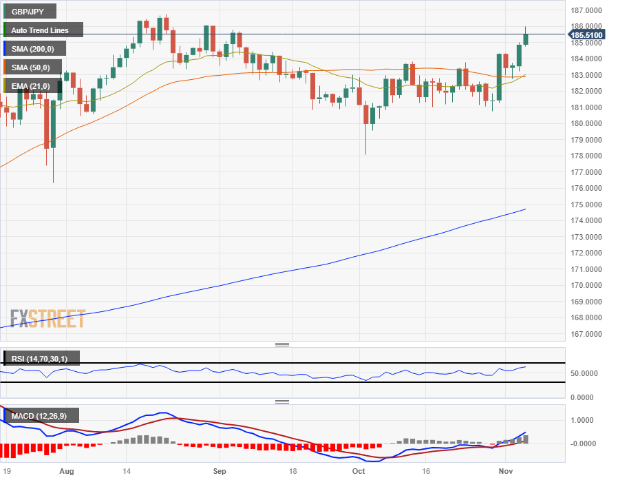 GBP/JPY heading towards 186.00 as dovish BoJ continues to crush the Yen