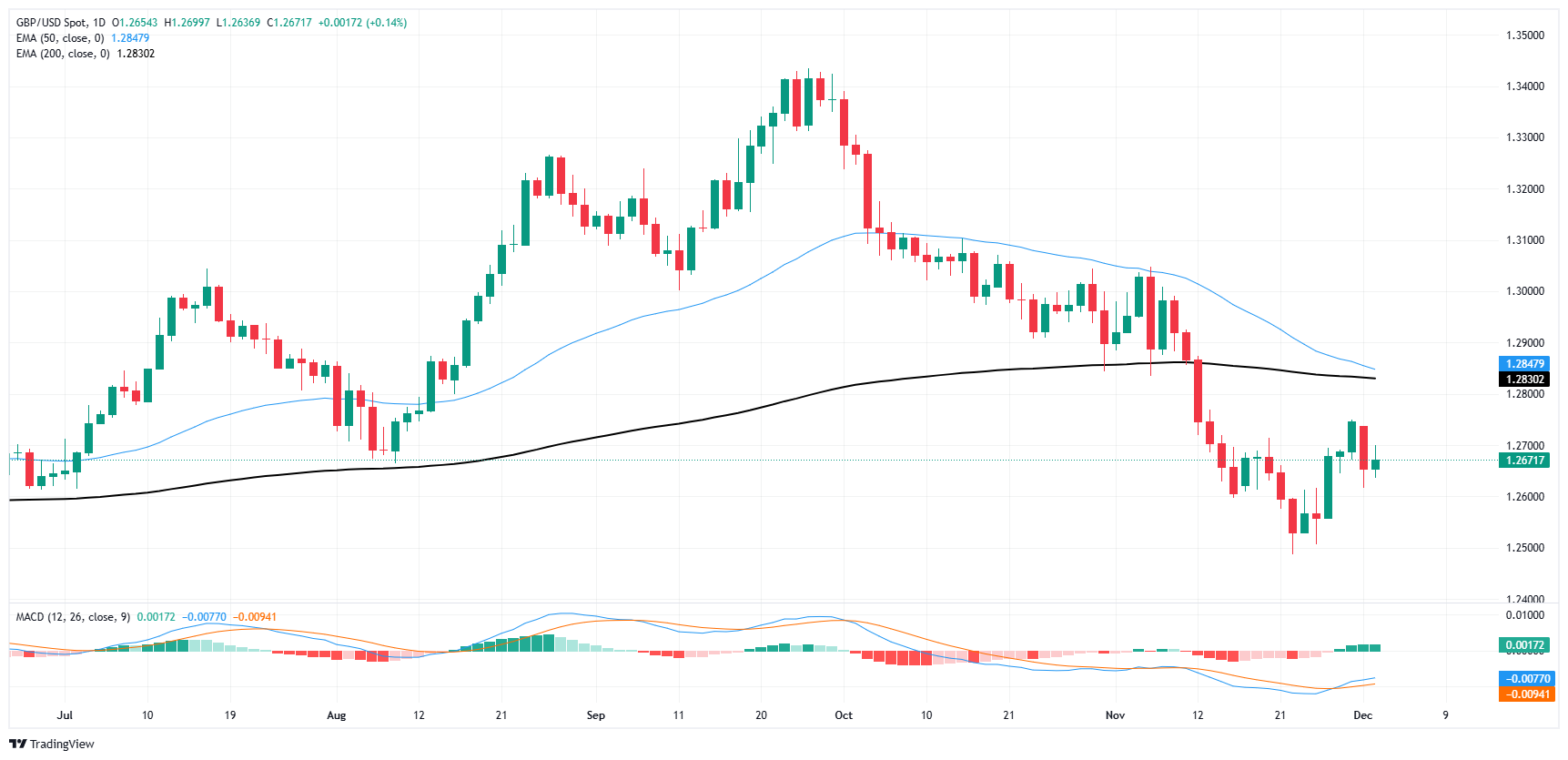 GBP/USD کاغذ نموداری را درست در جنوب هندل 1.2700 در روز سه شنبه به هم زد، در حالی که معامله گران پوند استرلینگ با آرامش قابل توجهی در داده های اقتصادی معنادار متمرکز بر انگلستان دست و پنجه نرم می کنند و بازارهای گسترده تر برای عبور تازه از داده های حقوق و دستمزد غیرکشاورزی ایالات متحده (NFP) آماده می شوند. موعد پایان هفته