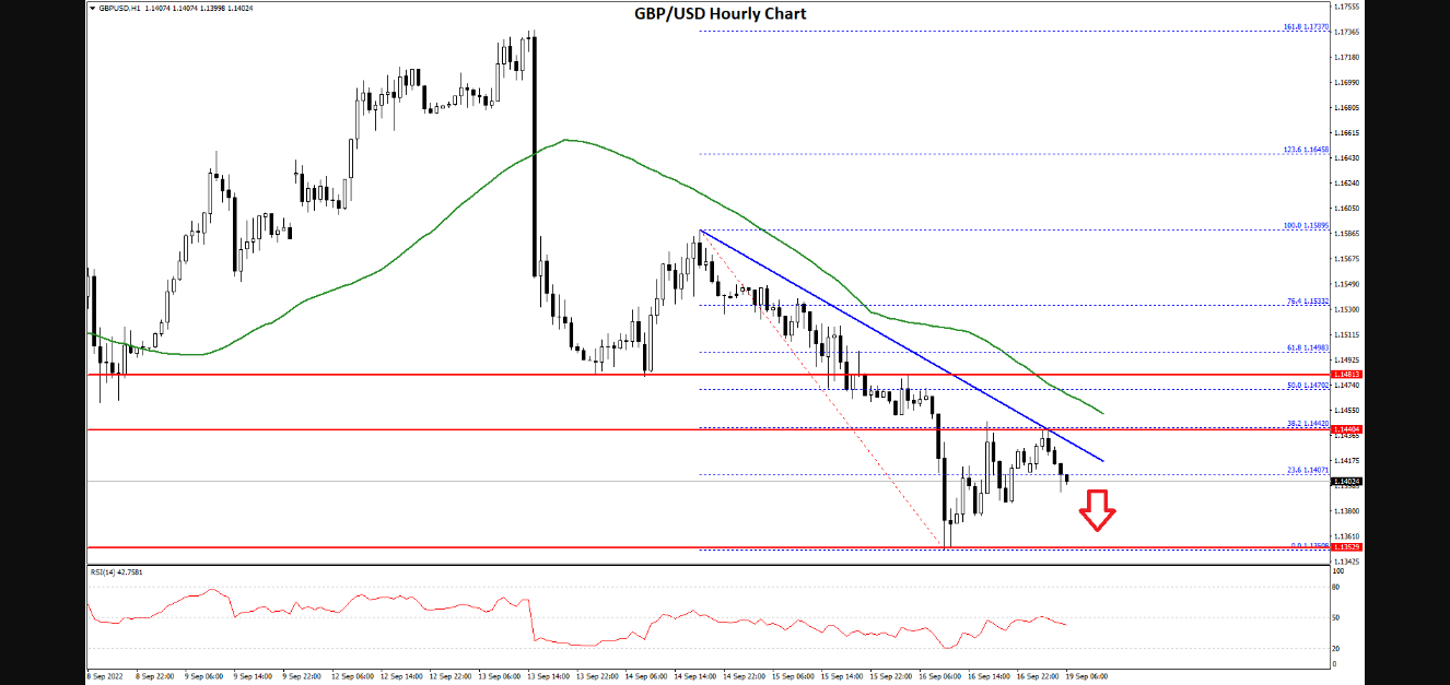 · یک خط روند نزولی کلیدی با مقاومت نزدیک به 1.1415 در نمودار ساعتی GBP/USD شکل می گیرد.