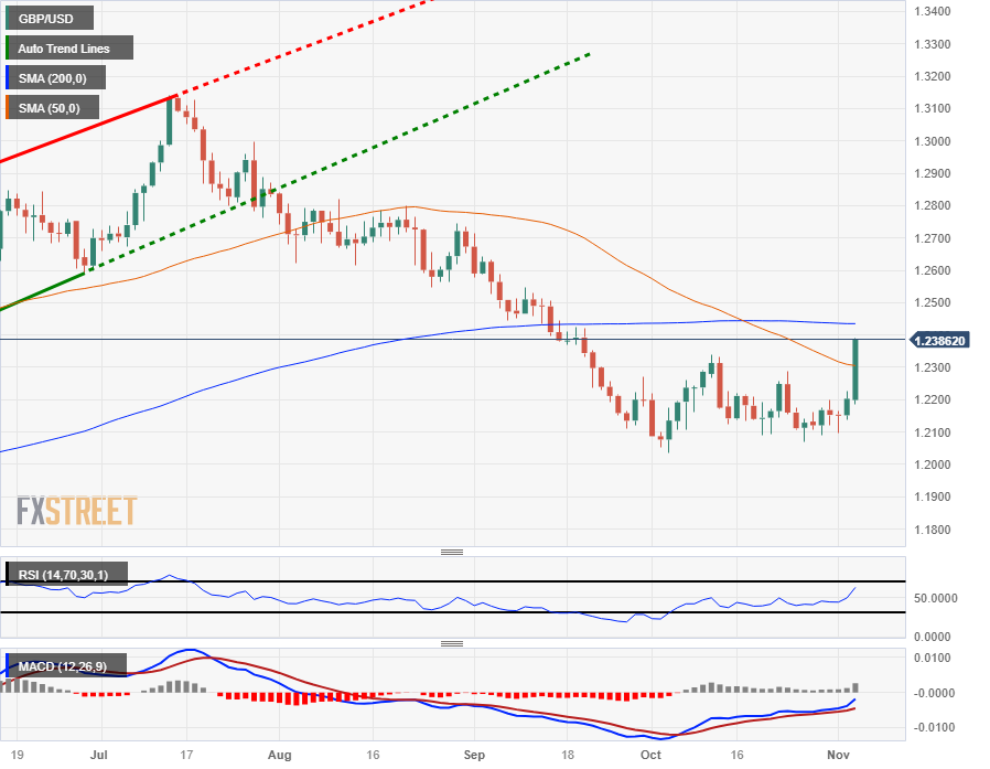 GBP/USD soaring into 1.24, set for its best trading day since March