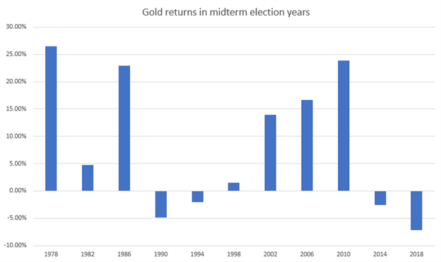 - Going back to 1978, the performance by gold prices before and after US midterm elections is a mixed bag.