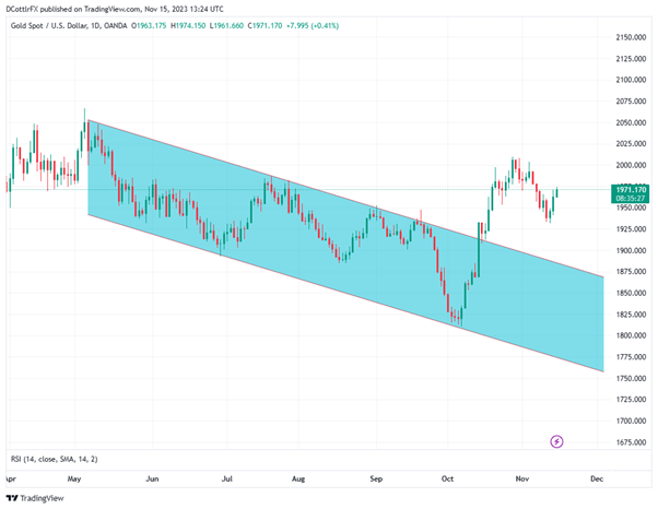 [ad_1] Gold (XAU/USD) Price, Analysis, and Charts UK CPI came in at a two-year low for October The Core measure also ticked lower Gold prices are closing back in on $2000 Learn How to Trade Gold With Our Complimentary Guide Recommended by IG How to Trade Gold Gold Prices continued to rise in Wednesday’s European