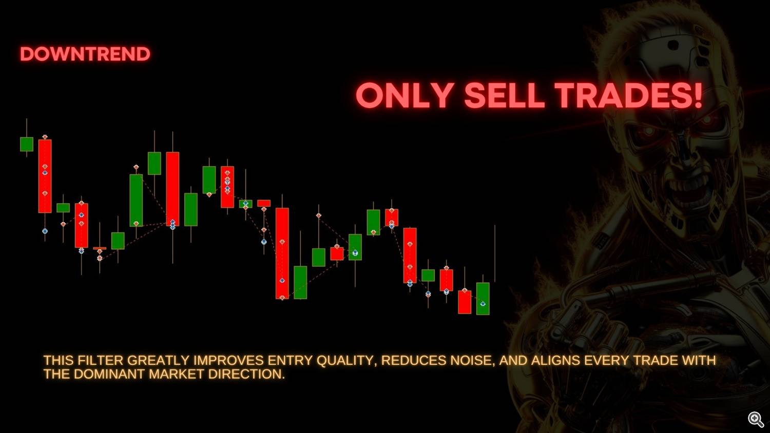 اکنون EA فقط در جهت روند اصلی معامله می شود. هیچ ورودی متضاد دیگری وجود ندارد.میزان دقت بالاتر