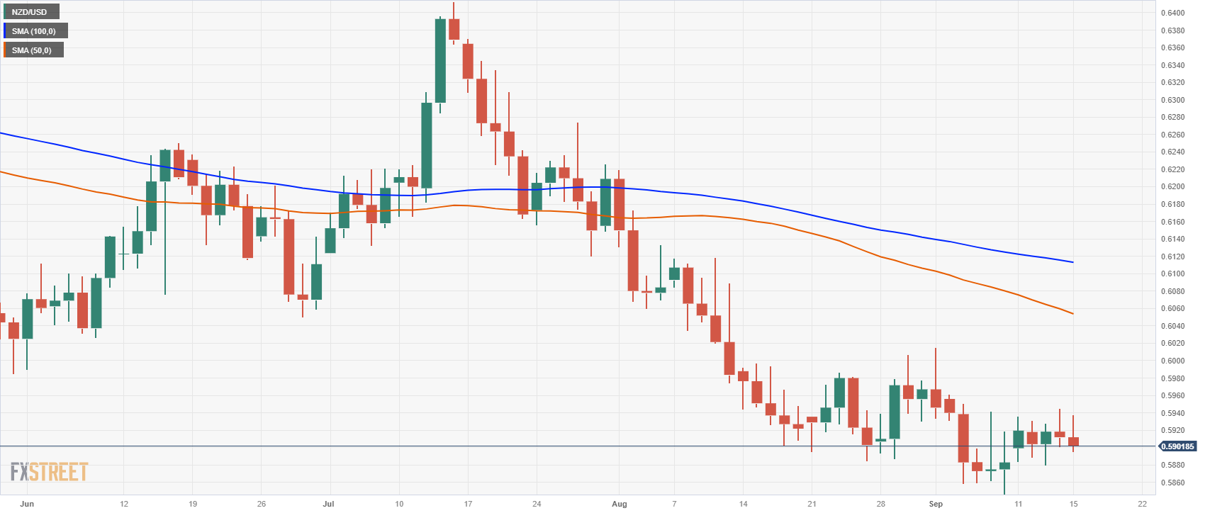 The 50- and 100-day Simple Moving Averages (SMAs) are in a bearish decline, piled up at 0.6060 and 0.6120 respectively, and breaks above the 100-day SMA have struggled to sustain for some time in the NZD/USD pair.