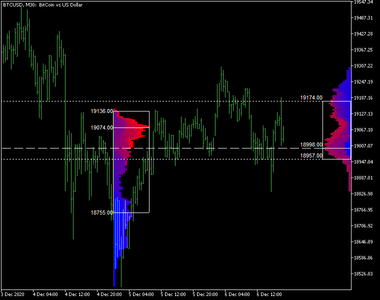 Market Profile indicator can also draw histogram from right to left. Unlike the traditional left-to-right display, it can be helpful to focus on the current trading session, without obscuring its chart. You can see how this works in the chart screenshot below.