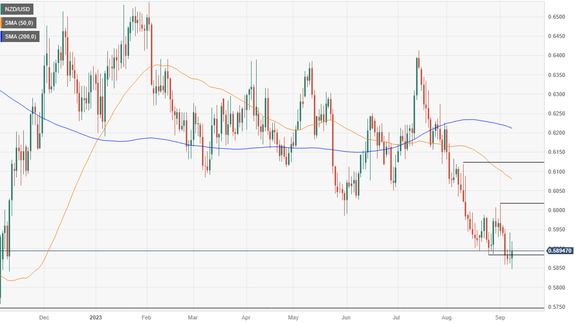 The New Zealand Dollar (NZD) stages a rebound against the US Dollar (USD), but it remains set to finish the week with losses. Fears of a global economic slowdown led by Europe and China dented investors’ mood during the European session, but Wall Street opened in the green. This bolstered the NZD/USD, which is trading at 0.5907, a gain of 0.57%.