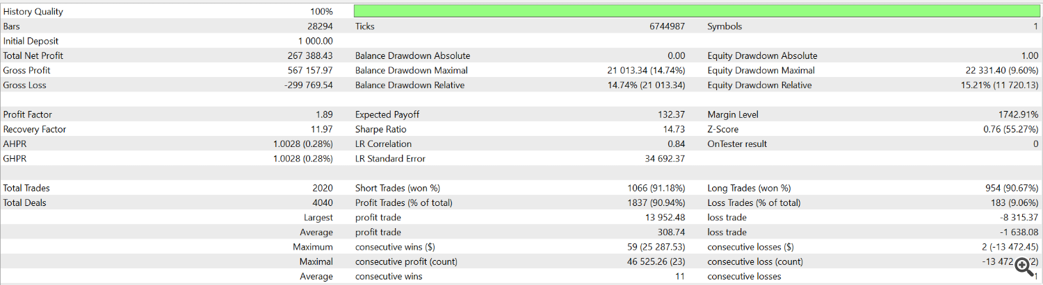 در زیر تصاویری از هر فایل مجموعه را مشاهده می کنید. هر آزمایش بر روی مدل آزمایشی OHLC m1 انجام می شود و شامل کمیسیون و کارمزد معاملاتی است. همه آزمون ها از 3 درصد ریسک تعادل در هر معامله استفاده می کنند. دوره آزمایش: 2019 (ژانویه) – 2024 (اکتبر)