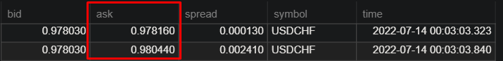 3. از معامله (یا توقف EA) پس از اخبار خودداری کنید. اخبار می تواند برای چند ساعت تحرکات بزرگی ایجاد کند، اما بعداً می تواند حتی نقدینگی کمتر از حد معمول را ایجاد کند. این ممکن است در مورد USDCHF باشد زیرا در 2022.07.13 اخبار مربوط به CPI وجود داشت.