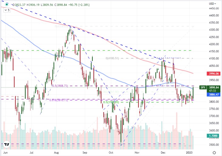 [ad_1] S&P 500، Dow، نوسانات، دلار، بازدهی، تورم و رکود: چشم انداز بازار: S&P 500 نزولی زیر 3800; USDCNH نزولی زیر 7.0000 هفته اول سال افزایش 1.5 درصدی برای S&P 500 و کاهش -3.0 درصدی نسبت به S&P 500 را ثبت کرد. VIX، مطابق با هنجارهای فصلی در حالی که بازار با پسزمینهای از انتظارات
