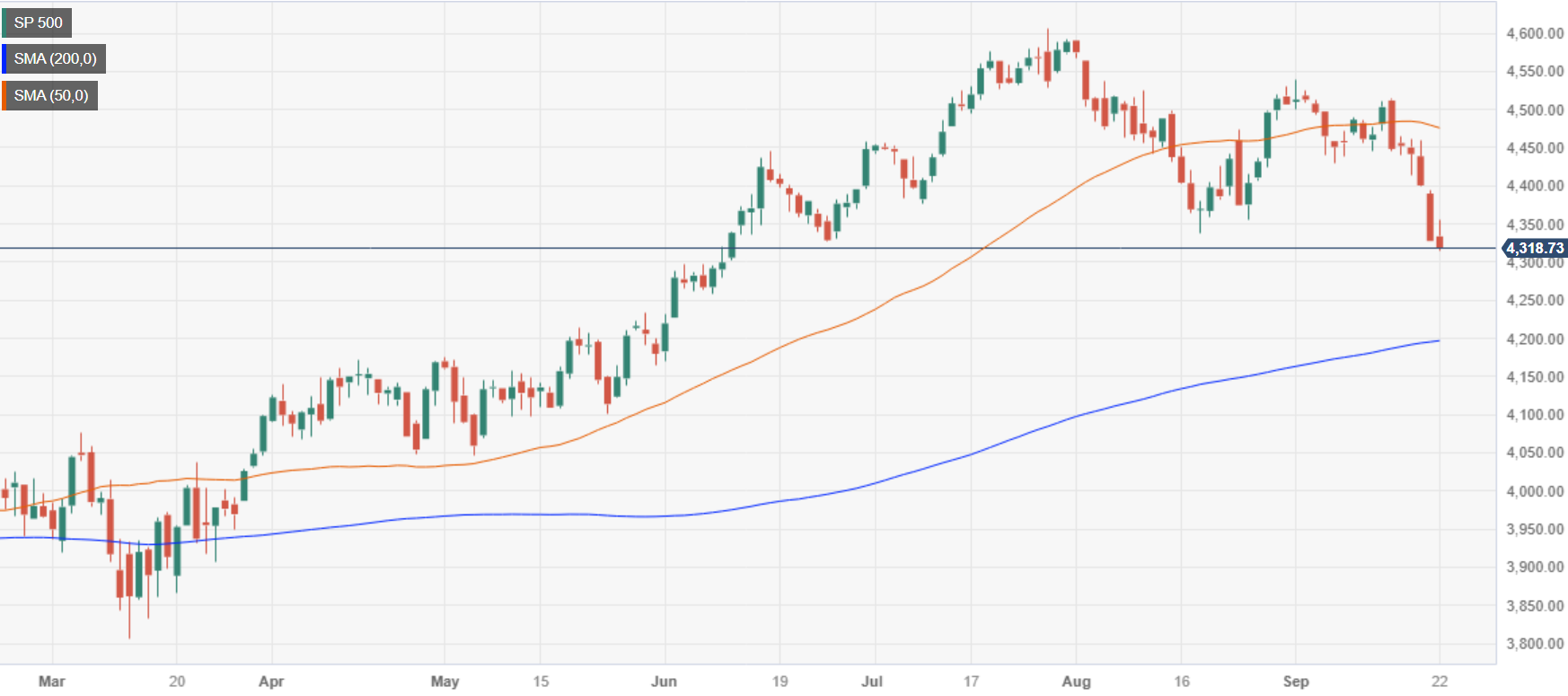 [ad_1] Share: S&P 500 concluded the week at 4,320.06, marking a 0.23% daily and a 3.02% weekly drop, reaching levels last seen in June, with Nasdaq and Dow Jones also incurring losses Federal Reserve’s decision to hold rates but revise upward projections for the Federal Funds rate for 2023 and 2024 spurred a