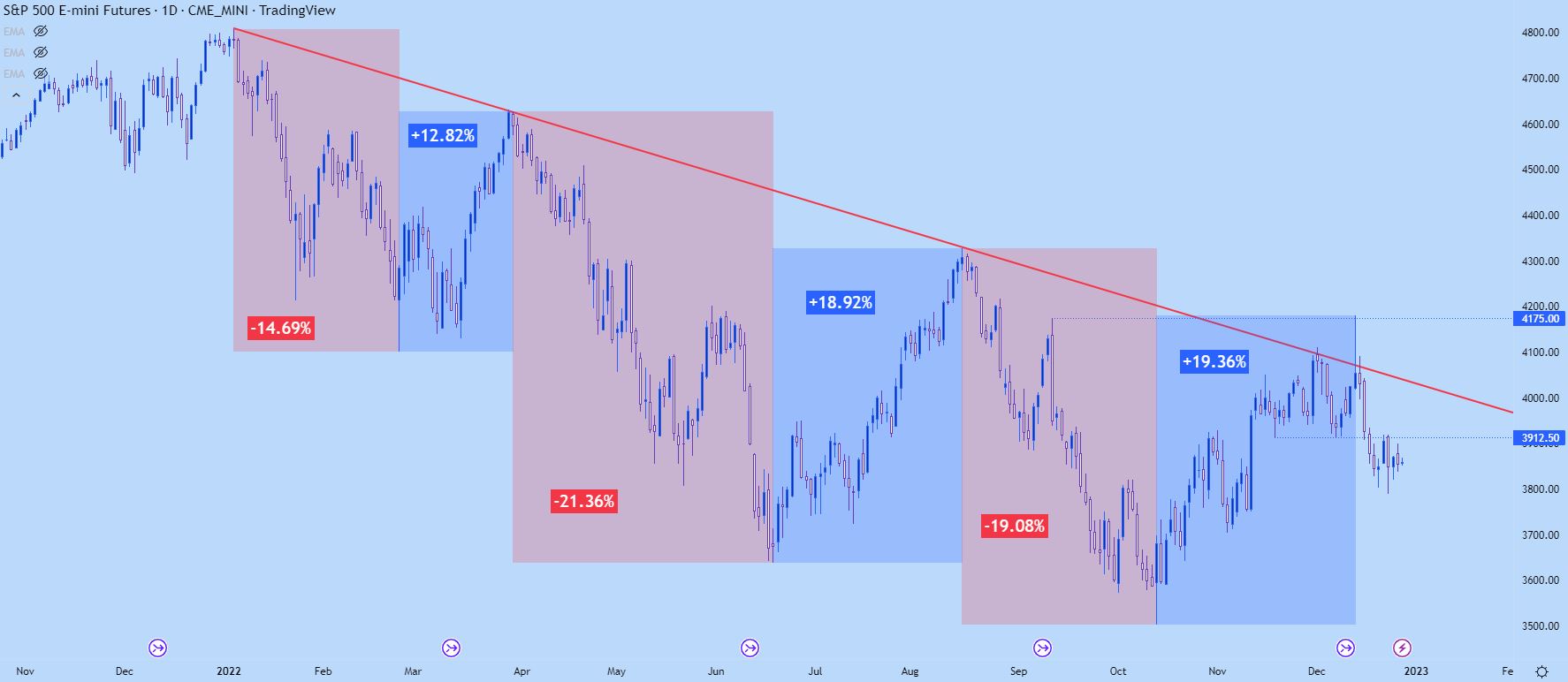 • The S&P 500 set its current all-time-high on the second trading day of 2022 and it was a bearish outing since, with a net move of about -20% in S&P 500 futures. But there were multiple twists and turns along the way.