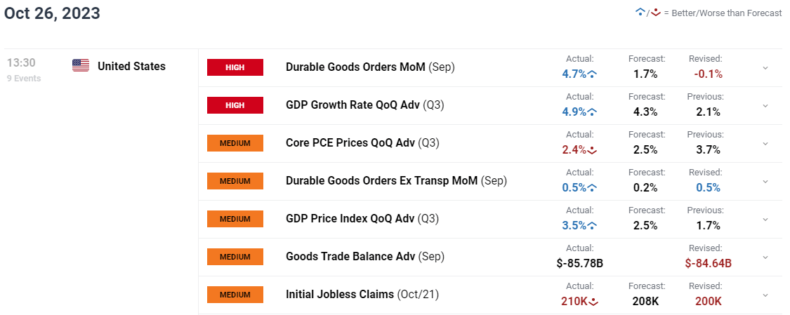 [ad_1] US GDP Q3 ’23 (PRELIM) KEY POINTS: READ MORE: S&P500, NAS100 Weighed Down by Tech Earnings and Rising Yields. 4000 Level Up Next? Elevate your trading skills and gain a competitive edge. Get your hands on the US Dollar Q4 outlook today for exclusive insights into key market catalysts that should be on every