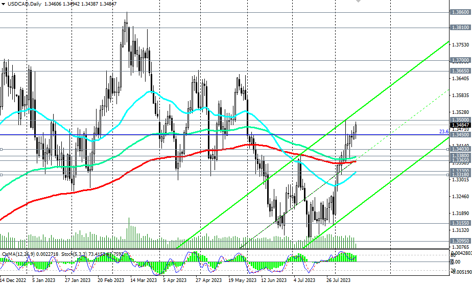 At the time of writing this article, the USD/CAD pair is trading near 1.3485, in close proximity to the local resistance level of 1.3500, corresponding to the 10-week high reached last week.