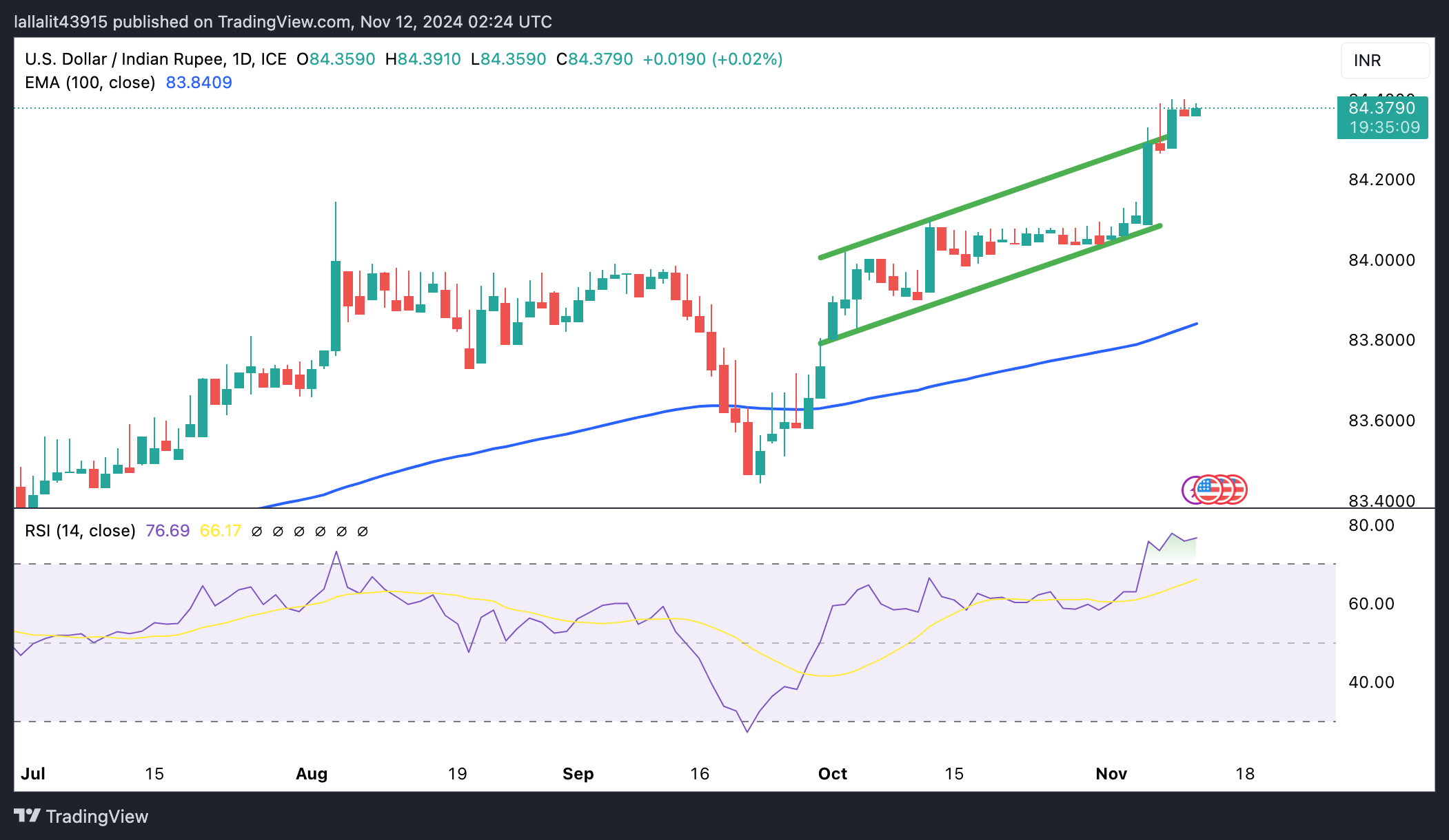 USD/INR جو صعودی را در بلندمدت حفظ می کند، اگرچه RSI بیش از حد خرید احتیاط را توصیه می کند