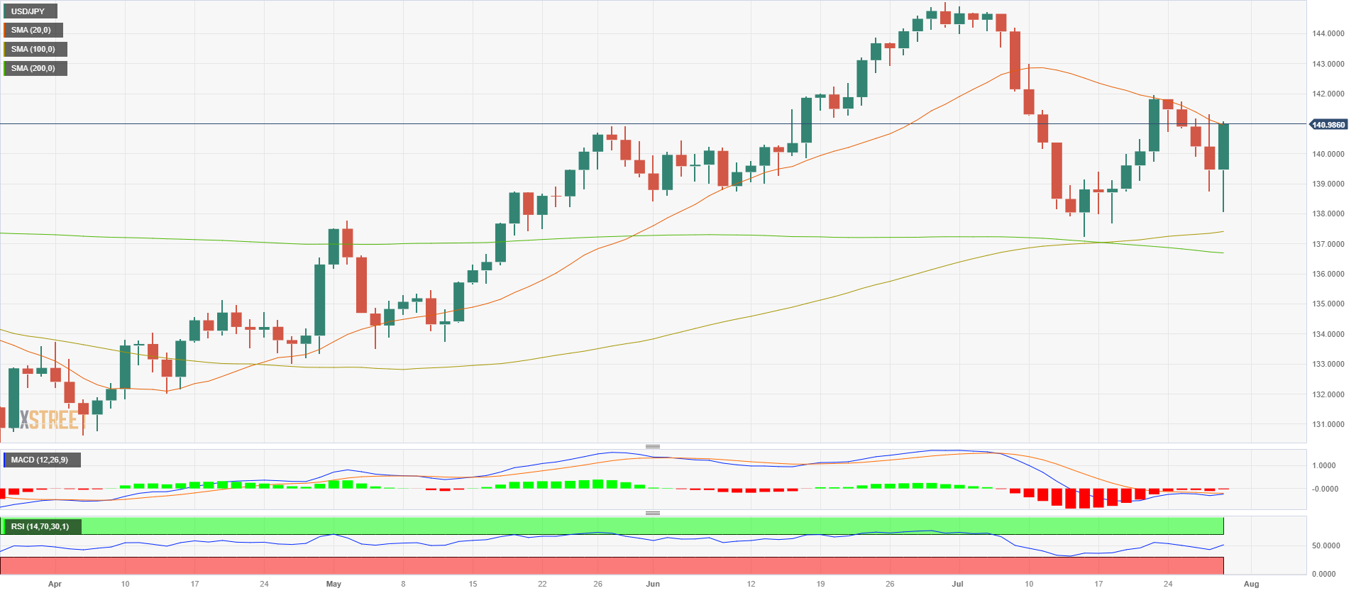 At the time of writing, the USD/JPY pair is trading near the 150.00 area, 1% above its opening price, after reaching a daily low of 138.05. The U.S. dollar, measured by the DXY index, trades relatively flat at the end of the week following pressured down by soft Core Personal Consumption Expenditures (PCE) figures from June.