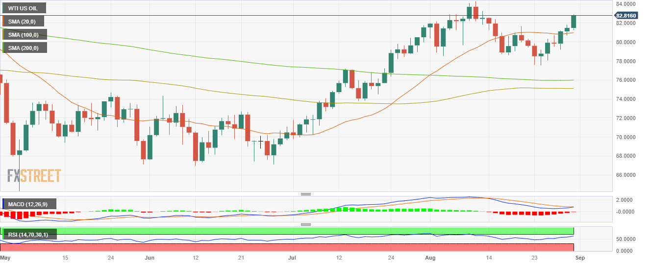 [ad_1] Share: WTI rose near the $82.90 zone, setting a three-day winning streak. Supply crunch fears amid the Hurracain Idalia tractions Oil prices. A stronger USD and the fragile Chinese situation may limit the upside. The West Texas Intermediate (WTI) rose on Wednesday and threatened the $83.00 resistance. What is driving the price