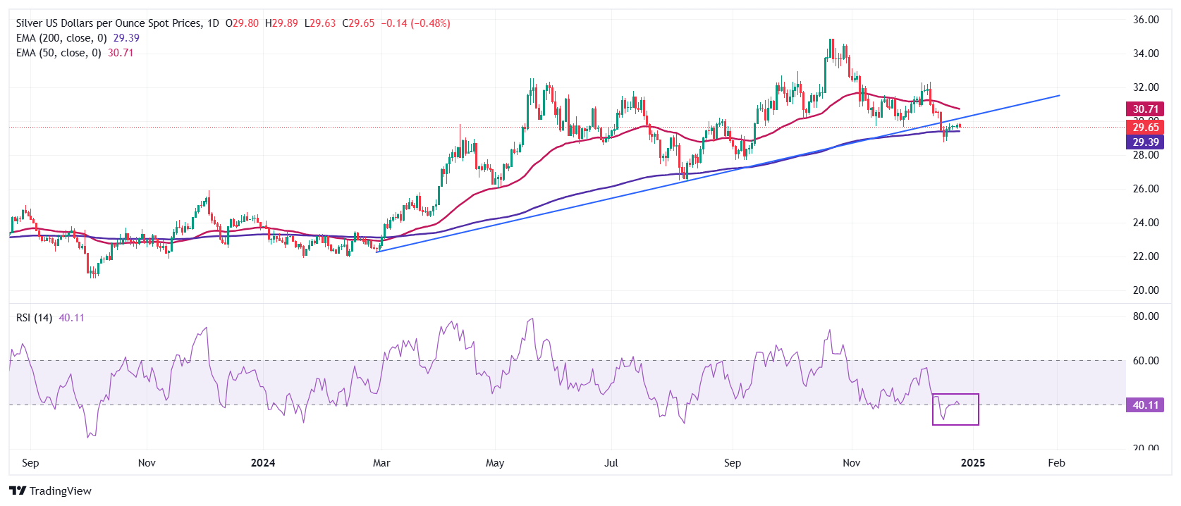[ad_1] با افزایش بازده اوراق قرضه ایالات متحده که انتظار می رود فدرال رزرو از چرخه کاهش تدریجی نرخ بهره در سال 2025 پیروی کند، قیمت نقره به شدت کاهش می یابد و به نزدیک به 29.60 دلار می رسد. تشدید تنش های ژئوپلیتیکی در خاورمیانه نتوانست قیمت نقره را افزایش دهد. چشم انداز قیمت