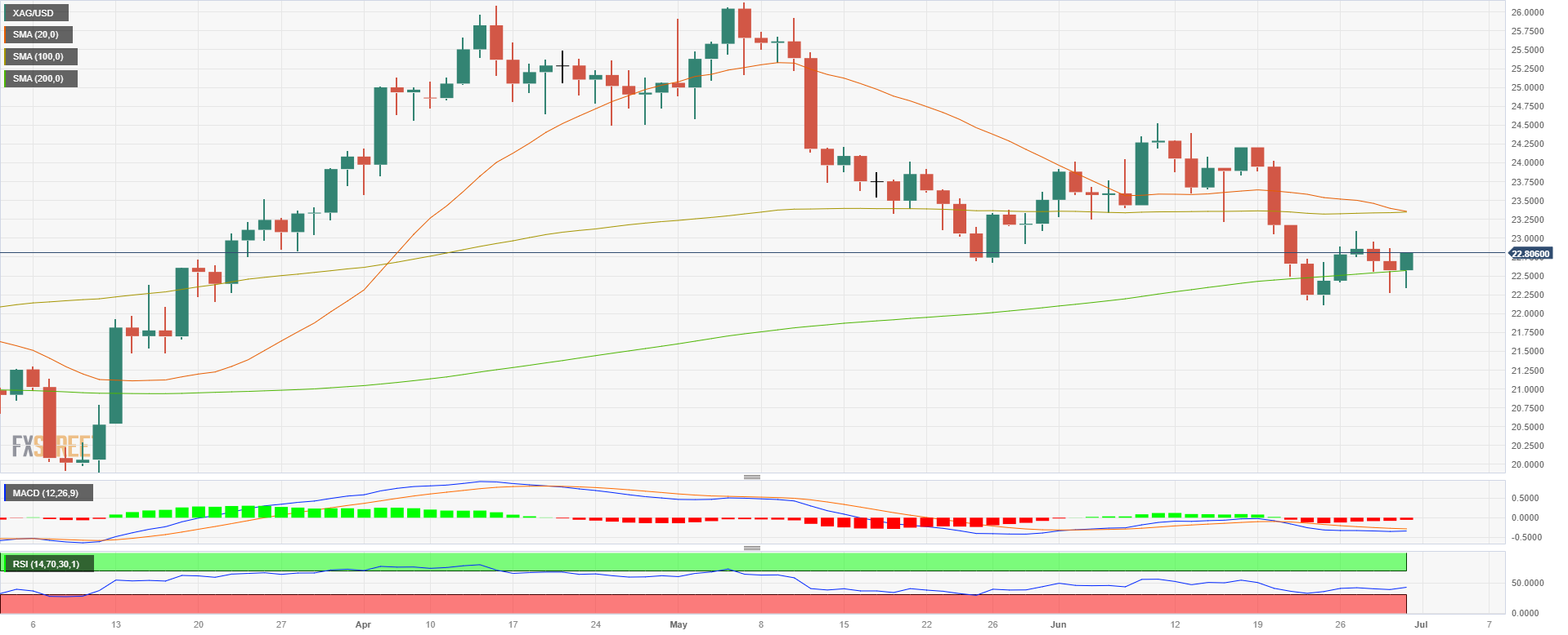 [ad_1] اشتراک گذاری: XAG/USD با افزایش بیش از 0.80 درصدی به بالای 22.70 دلار جهش کرد و قرار است یک هفته برنده را به پایان برساند. Core PCE در ماه می به 4.6% سالانه کاهش یافت که کمتر از انتظارات بود. به دنبال داده ها، بازده اوراق قرضه دلار و ایالات متحده کاهش