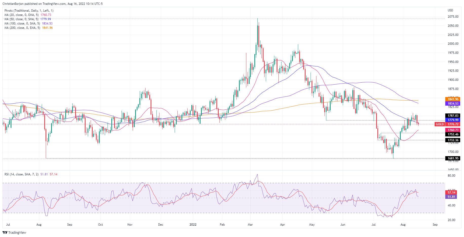 XAU/USD به زیر 1780 دلار سقوط کرد، اگرچه به DMA 50 چسبیده است