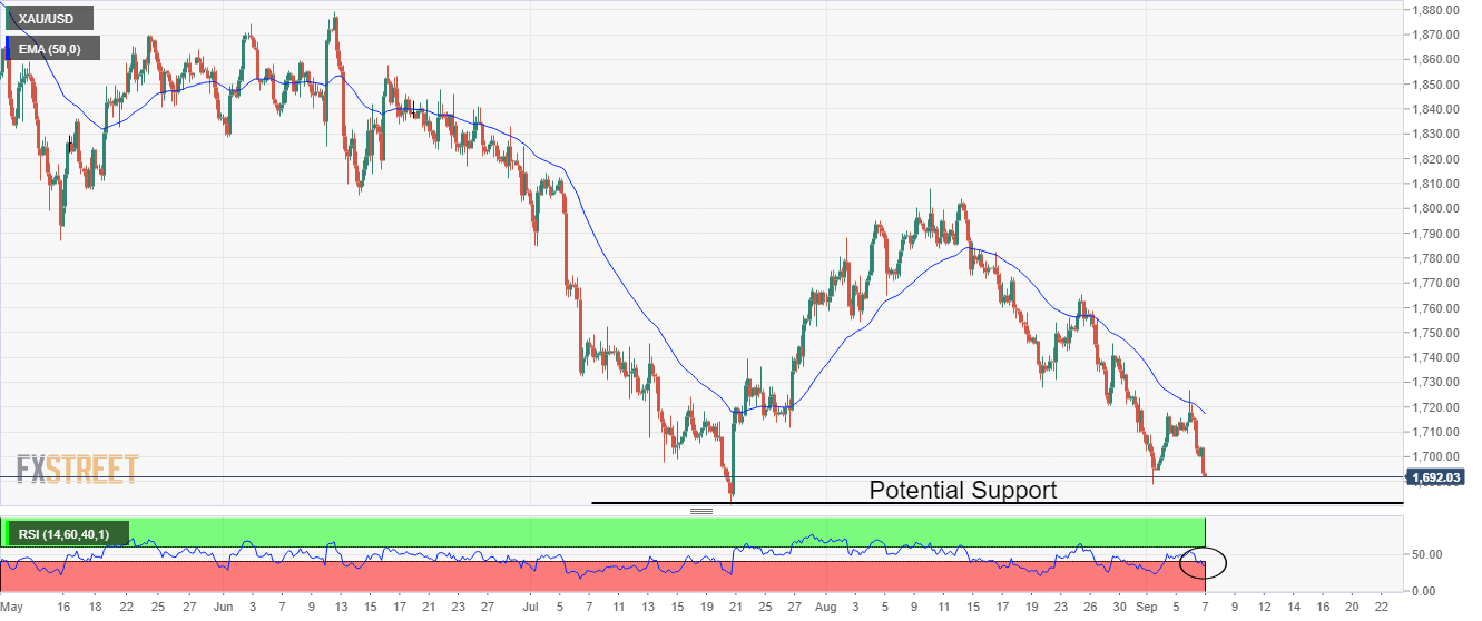 XAU/USD به کمتر از 1700 دلار رسید که احتمالاً قبل از سخنرانی فدرال رزرو پاول، ضعف بیشتری دارد.