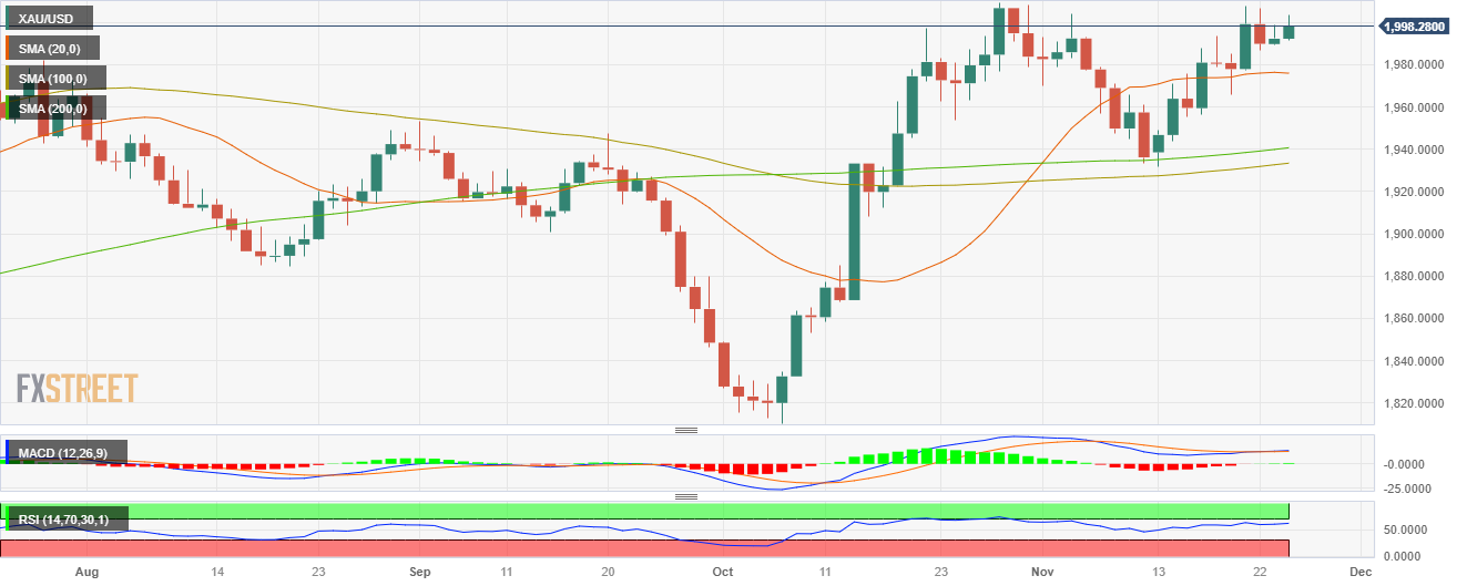 - The XAU/USD sees a boost, ascending to the $2000 level.