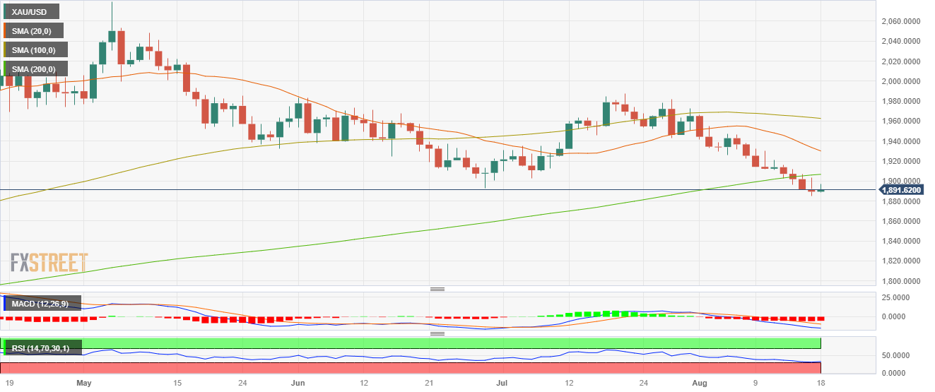 - XAU/USD recovered towards $1,890, still poised for a weekly decline.