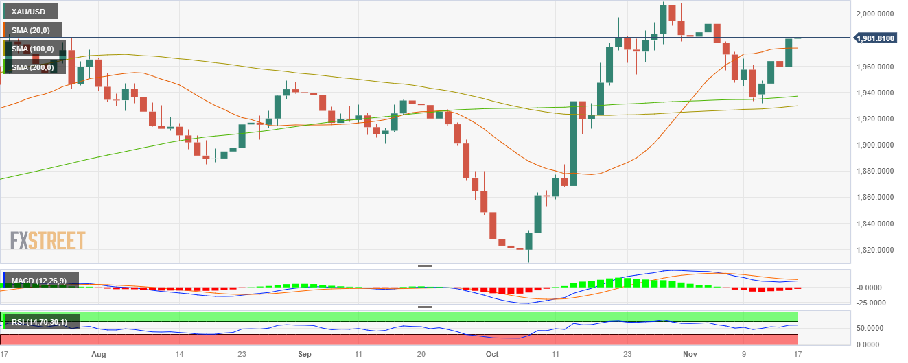 [ad_1] Share: The XAU/USD advanced to $1,980 after hitting $1,995 earlier in the session. Housing data from the US from October came in better than expected. Hawkish Fed speakers and US yields recovering halted the metal’s rise. The XAU/USD saw a slight upsurge in Friday’s session and is currently trading at $1,980 after hitting
