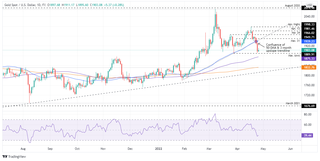 [ad_1] نگرانی در مورد جدیدترین شیوع کووید-19 در چین و ژئوپلیتیک، حال و هوای بازار را تضعیف کرد. علیرغم کاهش بازدهی خزانه داری ایالات متحده، جریان های امن دلار شاه بر قیمت طلا تأثیر گذاشت. پیش بینی قیمت طلا (XAUUSD): همچنان به سمت بالا متمایل می شود، اما به زیر 1890 تا 1900 دلار می