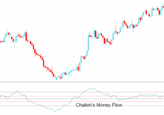 A divergence between the Money Flow indicator and price often signals a pending reversal in market direction. However as with all divergences its best to wait for confirmation signals before trading the divergence. A bullish divergence signal occurs when price makes a lower low while the Chaikin Money Flow indicator makes a higher low. Bearish divergence signal occurs when price makes a higher high while the Chaikin Money Flow indicator makes a lower high.